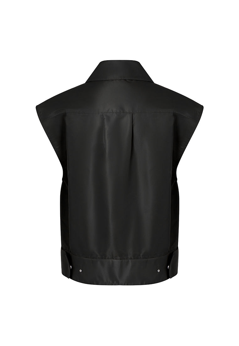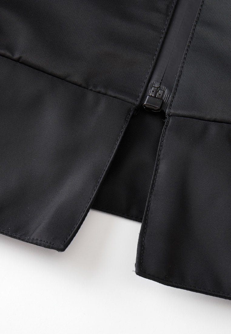 This cropped jacket is made from a RECYCLON® fabric that upcycles used water bottles, so you can be kind to the planet and to yourself. It has a V-neck collared neckline and adjustable waistband, with a sheen that screams quiet luxury.